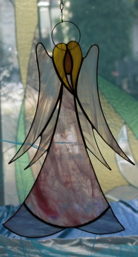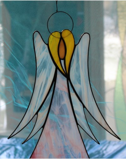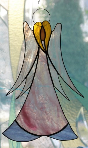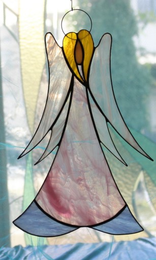 Витраж Тиффани про Ангел, большой, розовый