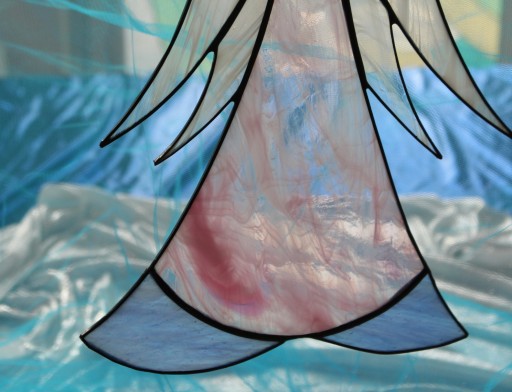 Szkło wycinane jest ręcznie i połączone ze sobą miedzią oraz cyną. Skrzydła wykonane są z półprzezryczystego białego-bezbarwnego szkła, sukienka zaś z barwionego w masie szkła, które nie jest malowane. Specyficzne ukształtowanie i wybarwienie szkła powoduje, że nie istnieją dwa identyczne egzemplarze.