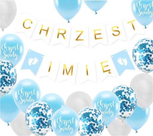 Zestaw gotowych dekoracji z okazji Chrztu Świętego sprawi, iż udekorowane pomieszczenie będzie prezentowało się niezwykle uroczycie. Girlanda z imieniem Twojego dziecka nada wyjątkowy charakter ozdobom z okazji chrztu.