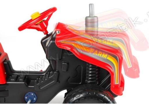 TRAKTOREK POSIADA NAPĘD NA PEDAŁKI ( Z MECHANIZMEM ŁAŃCUCHOWYM ) ORAZ SKRĘTNĄ KIEROWNICĘ, ZA POMOCĄ KTÓREJ DZIECKO KIERUJE CAŁYM ZESTAWEM !!!!