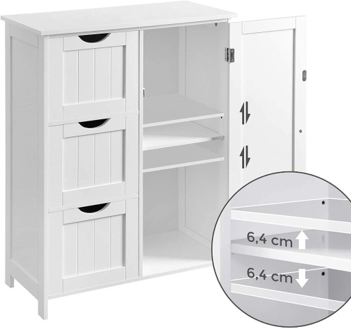 Funkcjonalna szafka - regał z trzema szufladami, doskonale sprawdzi się w łazience, w przedpokoju do przechowywania toreb, szalików, ozdób, kluczy itp., a także w sypialni czy garderobie.