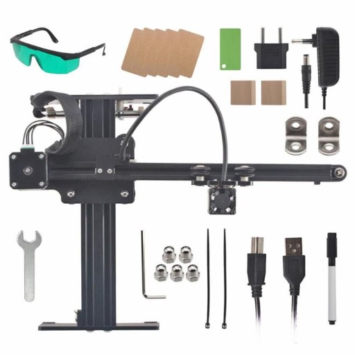 Grawer ten jest nowoczesnym połączeniem technologii laserowej oraz drukarki. W zależności od mocy lasera pozwala grawerować i przepalać różne materiały: drewno, bambus, papier, karton, plastik, gumę, skórę, lakier, malowany metal, PCBA, kość, mahoń. Model 3500 mW jest idealny do odtwarzania skali szarości. Model 7W i wyższe potrafią rzeźbić w niektórych twardszych materiałach. Model 20W może przecinać materiały do 2 mm, grawerować od 0.5 do 5 mm. Załączamy rzeczywiste zdjęcie wykonanego przez nas znakowania na materiale ze sklepu budowlanego.