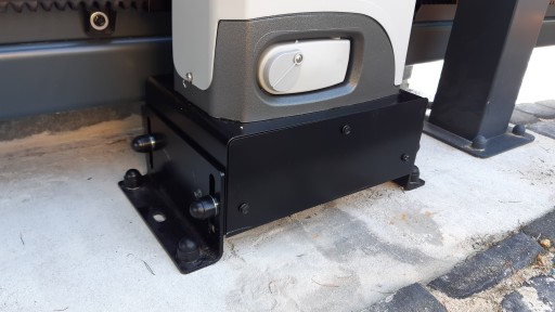 Podstawa montażowa ma zastosowanie kiedy mamy konieczność zamontowania napędu nieco wyżej nad gruntem, tak aby koło zębate napędu sięgało listwy zębatej przymocowanej do bramy.