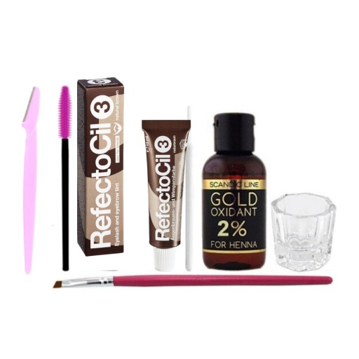 Henna + oksydant + kieliszek + pędzelek + szczoteczka + trymer do brwi