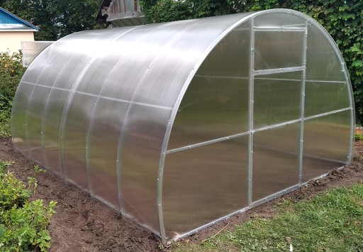 -Powłoka - poliwęglan komorowy 4 mm jest odporny na zróżnicowane warunki atmosferyczne (śnieg, deszcz, upały). Posiadając trwały i mocny szkielet, szklarnia jest w stanie wytrzymać obciążenie śniegiem do 80 kg na m2 (co odpowiada 25-30 cm świeżego śniegu), co oznacza że poliwęglan wytrzyma nawet śnieżną zimę. Okrągły kształt szklarni zapobiega zaleganiu śniegu.