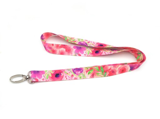 Smycz z nadrukiem wzoru kwiatów o szerokości 20mm z metalowym srebrnym karabińczykiem do kluczy