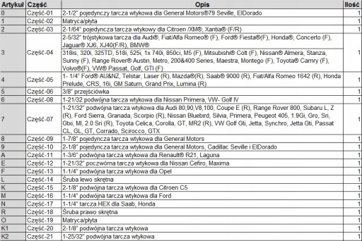 Zest. 21ele do wyciskania tłoczków hamulcowych FTXC4021