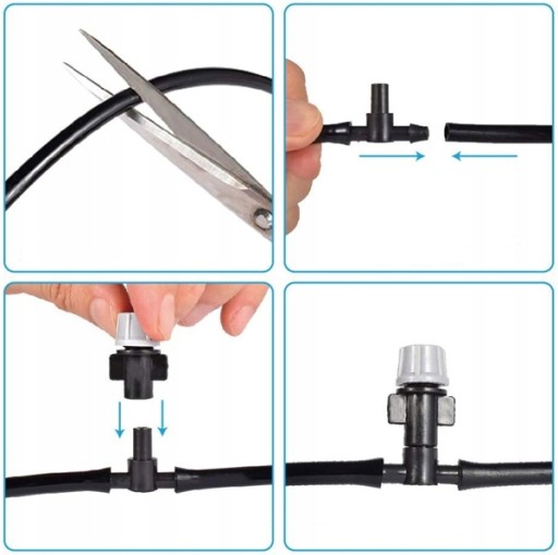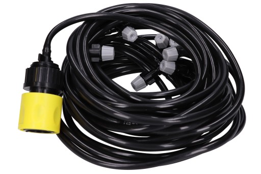 Wąż można przycinać na dowolny wymiar oraz łączyć złączkami ze zraszaczem. Dzięki temu rozwiązaniu dostosujesz szerokości między dyszami do własnych potrzeb.