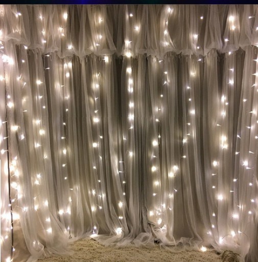 Kurtyna LED z pilotem o wymiarach świetlnych 3 m x 2,5 m.