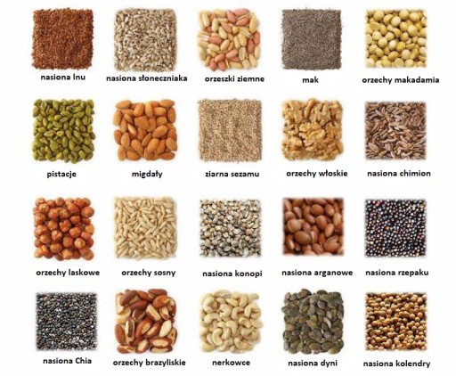 Prasa tłoczy olej z nasion wszystkich roślin oleistych o zawartości oleju powyżej 15% i wilgotności poniżej 10%. Jest odpowiednia również do orzechów bez skorupek oraz orzechów prażonych. Przykładowy wykaz materiałów przedstawiamy poniżej.