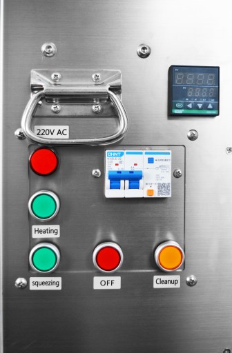 Powierzchnia maszyny wykonana jest z chromowanej stali nierdzewnej, zgodnej z wymogami higieniczno-sanitarnymi. Elementy, które mają kontakt z przetwarzanym materiałem zostały wykonane ze stali nierdzewnej 304 i 420.