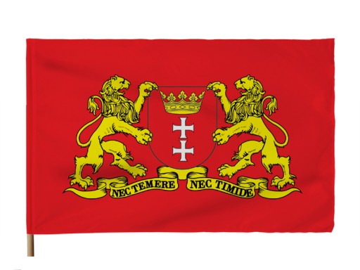 ФЛАГ ГДАНЬСКА С ГЕРБОМ - 2 ЛЬВА 110x70 см Флаги Гданьска - ПРЕМИУМ МАТЕРИАЛ