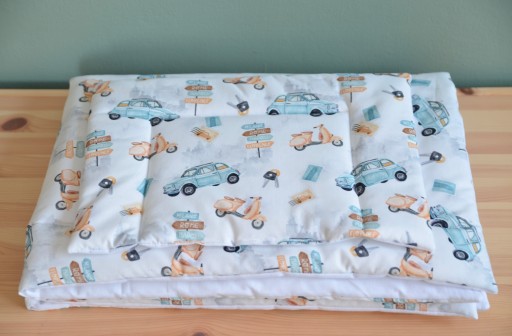 Lekka pościel bawełniana wypełniona antyalergiczną watoliną (2cm), wystebnowana. Poduszka 25x35 cm, kołderka 50x70 +/- 2.