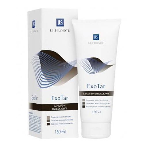 Exotar jest szamponem przeznaczonym do stosowania u osób cierpiących na zapalne choroby skóry owłosionej głowy. Połączenie substancji czynnych – dziegciu sosnowego, siarki strąconej oraz ichtiolu jasnego warunkuje właściwości przeciwzapalne preparatu, zmniejsza powstawanie łuski oraz hamuje uczucie świądu i pieczenia. Składniki podłoża szamponu wykazują dodatkowo działanie nawilżające i wspomagają oddzielanie się łuski.