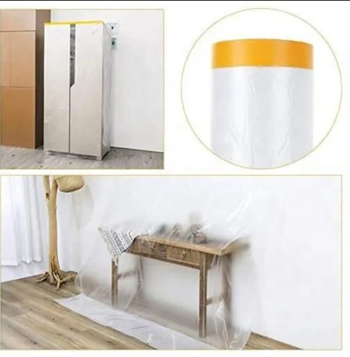 ЗАЩИТНАЯ ПЛЕНКА ДЛЯ ПОКРАСКИ С ЛЕНТОЙ 110см33м БЕЗОПАСНАЯ ПЛЕНКА ПРОТИВО ПОШЛЕПКОВ