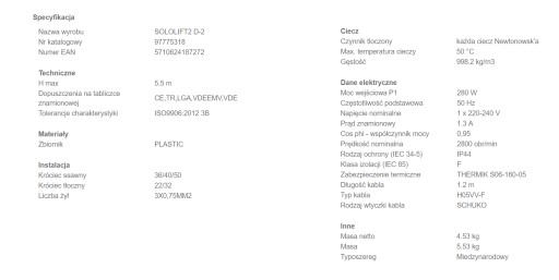 Grundfos Sololift2 D-2 Kompaktowy Agregat Podnoszący do Pompowania Ścieków Szarych Bez