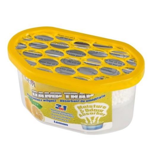 Pochłaniacz wilgoci to ratunek przed niszczącym i niebezpiecznym działaniem zbyt wilgotnego powietrza. Woda cieknie po szybach? Ubrania wydzielają przykry zapach? A może tapeta zaczyna odpadać, a na suficie pojawiają się ciemne plamy pleśni? Jeżeli tak, to jak najszybciej zwalcz problem, który kosztuje wiele pieniędzy i może doprowadzić do poważnych chorób. Najlepszym sposobem jest nowy pochłaniacz wilgoci o zapachu cytrynowym marki Gem. Ten przyjemnie pachnący pochłaniacz wilgoci wchłania nadmiar wody z powietrza, powstrzymując rozwój pleśni. Dodatkowo roztacza wokół siebie wspaniały, świeży cytrynowy zapach.