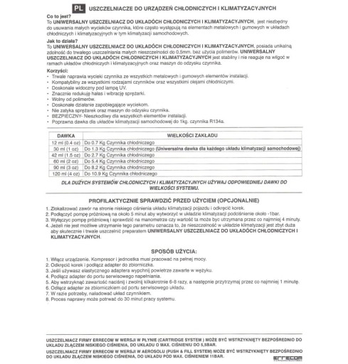 Uszczelniacz do wycieków klimatyzacji samochodowej i stacjonarnej Errecom