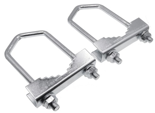 W komplecie znajdują się dwie obejmy zaciskowe duże UZ-50 M8 Luxon. Objemy służą do przytwierdzenia masztu do obejmy kominowej. Maksymalna średnica masztu nie może przekraczać 50mm.