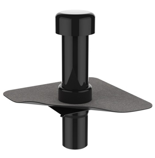 Kominek wentylacyjny do odpowietrzenia kanalizacji oraz wentylacji pomieszczeń z kołnierzem papowym do zamontowania na dachu płaskim.