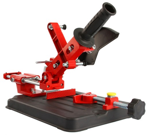 Precyzyjny i profesjonalny statyw do przecinarek kątowych o średnicy tarczy 115 - 125 mm z uniwersalnym mocowaniem.