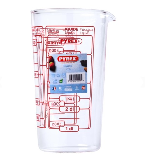Aby uprościć ten ważny krok, Pyrex® wprowadził na rynek szklaną miarkę.
