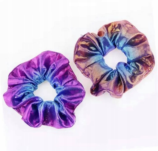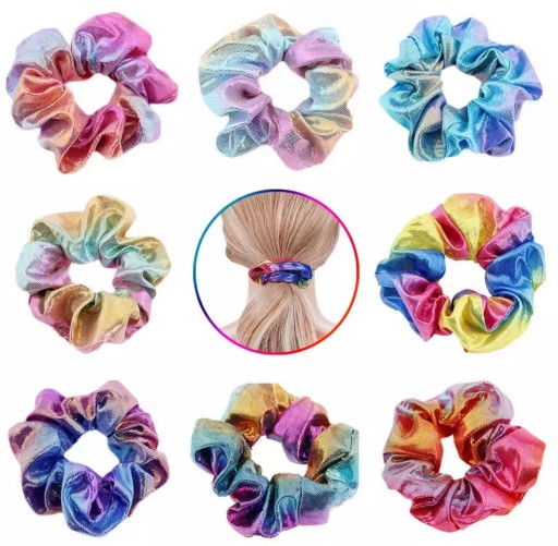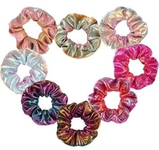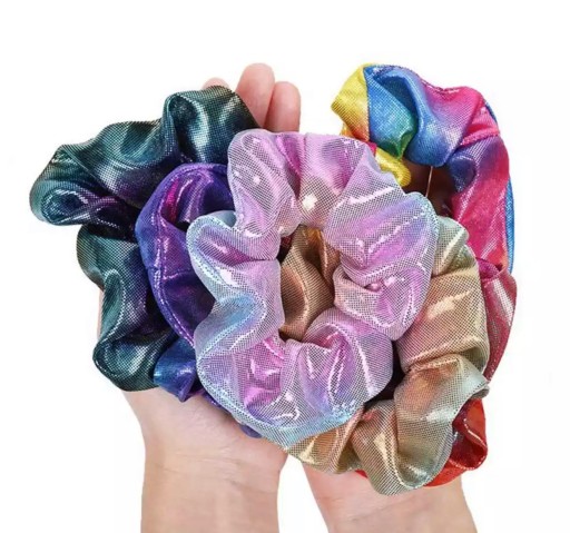 Przedmiotem aukcji jest fantastyczny zestaw metalicznych, wielokolorowych i przepięknie mieniących się Scrunchies.