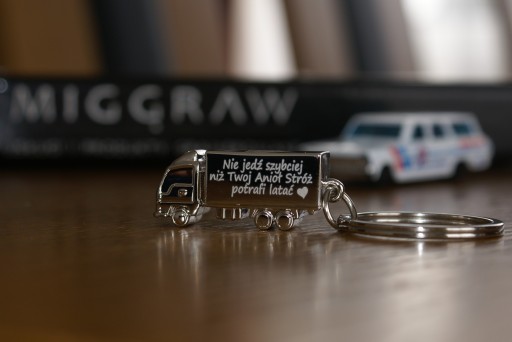 Na tej aukcji oferuje wykonanie logo, napis, grawer na breloku metalowym ciężarówka. Brelok wykonany z chromowanego metalu, pakowany w elegancki czarny kartonik. Brelok jest to miniaturka TIRa, o unikalnym trójwymiarowym kształcie, 3D , wyjątkowo wiernie odzwierciedla detale prawdziwych ciężarówek.