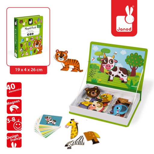 Magnetyczna układanka Magnetibook Janod w wersji graficznej: Zwierzęta