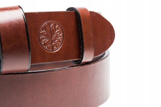 Na końcu paska znajduje się wytłoczone drzewko - logo marki Betlewski®. Oryginalność produktu potwierdzają także znakowania po wewnętrznej stronie paska.