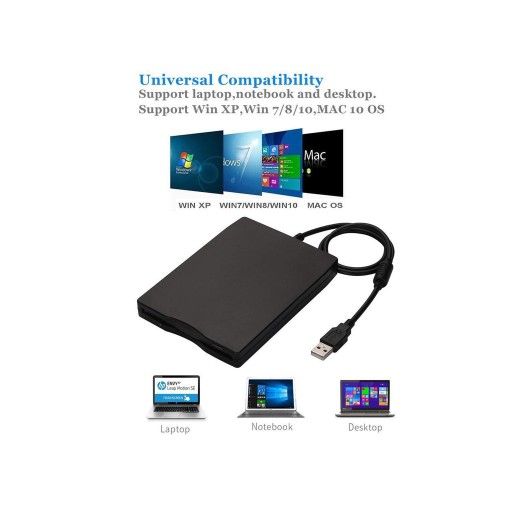 - NAPĘD USB FLOPPY DISK - zewnętrzny czytnik dyskietek 3,5 "USB, odczytuje dyskietki 3,5" o pojemności 720KB / 1,44 MB.