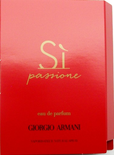 Próbka wody perfumowanej Giorgio Armani Si Passione dla kobiet o pojemności 1,2 ml z atomizerem. Promocja! Przy zakupie 10 szt. Dodatkowo taka sama próbka gratis.