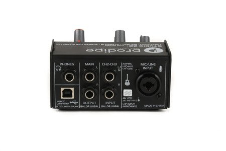 Interfejs Studio 22+ zawiera: Wejście mono dla instrumentu/mikrofonu: Symetryczne złącze XLR i symetryczne Jack Phantom power z przełącznikiem ON/OFF i diodą LED Potencjometr odpowiadający za wzmocnienie Wejście stereo liniowe/instrumentalne: Podwójne Jack 6,35mm (symetryczne/niesymetryczne) Regulacja głośności z sygnalizatorem sygnału LED Port audio stereo USB: Kanał stereo BUS Potencjometr do regulacji głośności Wyjście stereo MAIN MIX: Podwójny Jack (symetryczny/niesymetryczny) Regulacja poziomu wyjściowego MAIN MIX Przełącznik impedancji "Hi-Z" Wyjście słuchawkowe stereo: Złącze Jack Regulacja Port stereo USB: Kanał stereo BUS Cechy: Dioda zasilania Kompatybilny z Mac OS Kompatybilny z Windows Zasilanie USB Możliwe zaopatrzenie w zewnętrzny zasilacz DC 5V/500mA 3-pinowe złącza XLR, standard IEC 60268 Pobór mocy: 2,5W Wymiary: 109 x 52 x 104mm Waga: 0,5kg