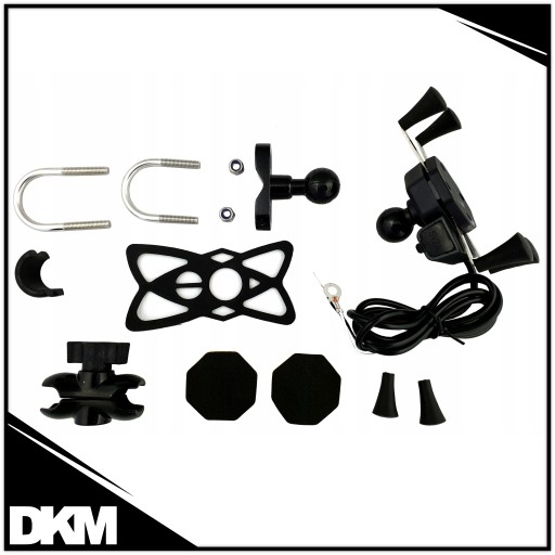 Solidny, ultrastabilny uchwyt motocyklowy na telefon (na kierownicę o średnicy 10-33 mm) z wyjściem USB z możliwością szybkiego ładowania 2A. Pasuje do smartfonów wszystkich marek, a także wielu innych urządzeń o boku długości 35-85 mm. Uchwyt zapewnia stabilizację pozycji telefonu nawet w jeździe offroadowej. Zestaw zawiera mocowanie do kierownicy oraz pod śrubę (lusterko).