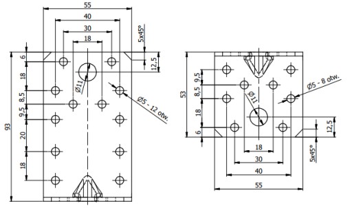 - ilość otworów -20 otworów ø5mm, 2 otwory ø11mm,