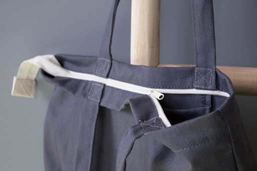 Zamek błyskawiczny w kolorze ecru podkreśla detale, jednocześnie chroniąc zawartość przed wysypaniem.