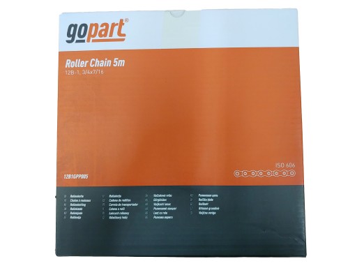 Łańcuch rolkowy marki Gopart, 12B-1, 3/4" , odcinek 5m w opakowaniu firmowym. Ogniwo łączące w zestawie.