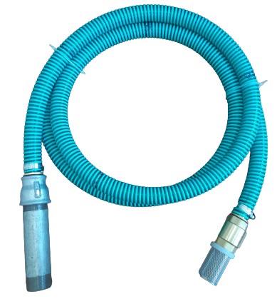 Wąż ssący z koszem ssawnym i zaworem zwrotnym do pomp ręcznych skrzydełkowych oraz abisynek oraz do zastosowanie wszędzie tam, gdzie nie jest wymagane stałe podłączenie pompy do źródła wody.