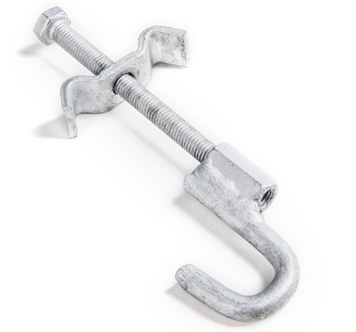 Mocowanie jest proste i nie wymaga specjalistycznych narzędzi, ani umiejętności. Klamrę górną umiejscawia się pomiędzy płaskownikami nośnymi (to te, które oparte są obustronnie na podporach) możliwie jak najbliższej podparcia. Następnie, poprzez otwór przelotowy, wpuszcza się śrubę o średnicy 8 mm, która ma przechodzić przez podłużny otwór w dolnej łapie. Łapę ustawia się sztywno i skręca całość przy pomocy nakrętki kwadratowej, kluczem 13.