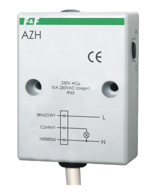 Zasilanie 230 V. Maksymalne obciążenie 10 A. Hermetyczny. Element światłoczuły wbudowany.