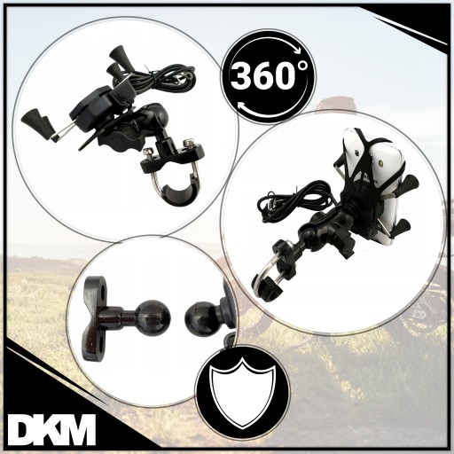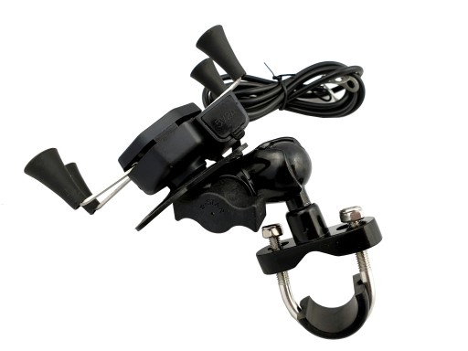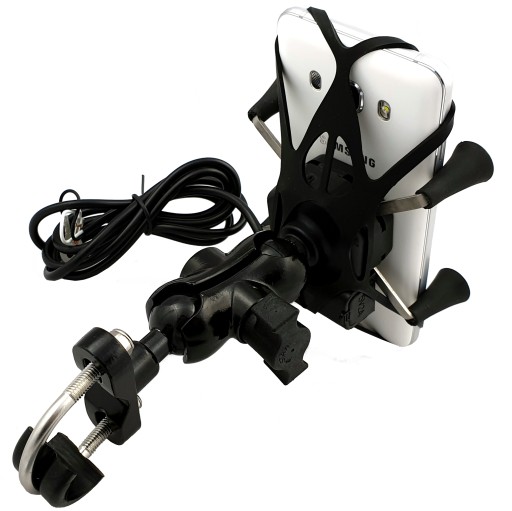 Solidny, ultrastabilny uchwyt motocyklowy na telefon (na kierownicę o średnicy 10-33 mm) z wyjściem USB z możliwością szybkiego ładowania 2A. Pasuje do smartfonów wszystkich marek, a także wielu innych urządzeń o boku długości 35-85 mm. Uchwyt zapewnia stabilizację pozycji telefonu nawet w jeździe offroadowej. Zestaw zawiera mocowanie do kierownicy oraz pod śrubę (lusterko).