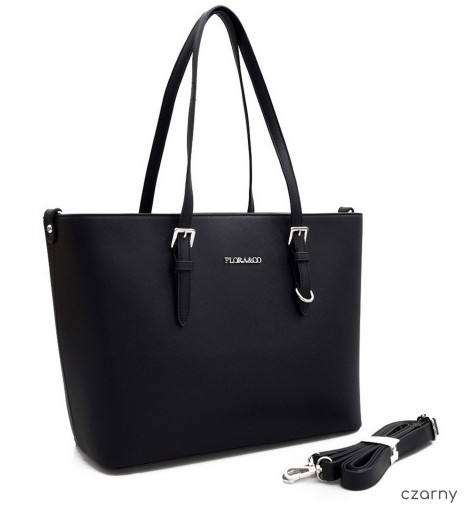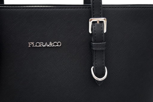 Wytrzymała, praktyczna i solidna torebka klasyczna marki FLORA&CO w kolorze CZARNYM. Wykonana została bardzo starannie z dbałością o najmniejsze szczegóły ze sztywnego tworzywa odpornego na zarysowania i zabrudzenia. Posiada długie uchwyty umożliwiające wygodne noszenie na ramieniu. W zestawie znajdziesz również długi i regulowany pasek o długości 125 cm, dzięki czemu możesz ją nosić na wiele sposobów. Z przodu znajduje się estetyczne logo producenta w kolorze srebrnym oraz dodatkowa metalowa obrączka na której można przywiesić np. ozdobny breloczek lub klucze. Z tyłu znajduje się duża, zamykana na suwak pojemna kieszonka. Torebka jest bardzo pojemna i bez trudu zmieścisz w niej sztywny format A4. W środku jest wykończona wysokiej jakości podszewką i posiada przez środek przegrodę zamykaną na suwak. Na ściance bocznej posiada zamykaną kieszonkę oraz dwie dodatkowe kieszonki na drobiazgi. Spód torebki chronią solidne nóżki ochronne. Będzie pasowała do niemal każdej stylizacji.