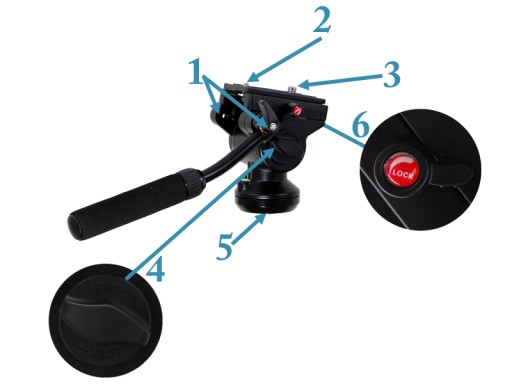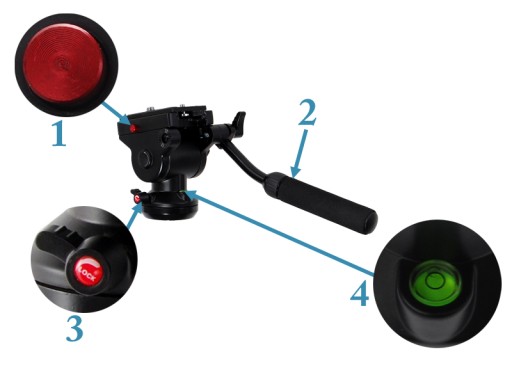 Płynny ruch głowicy pozwala bez przeszkód filmować, dzięki wbudowanym płynnym wkładom. Na głowicy umieszczona jest wypinana zatrzaskowa metalowa szybkozłączka ze standardowym gwintem 1/4 oraz 3/8 cala, która jest zabezpieczona przed samoczynnym odczepieniem poprzez blokujący mechanizm sprężynowy (może być również na stałe przymocowana do aparatu/kamery).