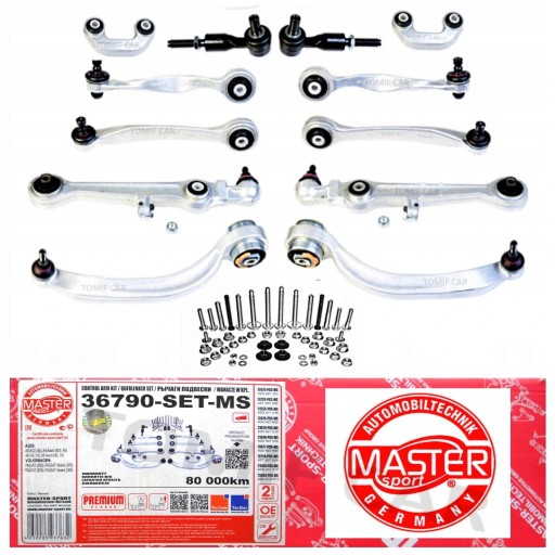 ORYGINALNY ZESTAW WAHACZY PRZEDNICH + KOŃCÓWKI UKŁADU KIEROWNICZEGO + ŁACZNIKI STABILIZATORA RENOMOWANEJ I CENIONEJ FIRMY MASTER SPORT GERMANY