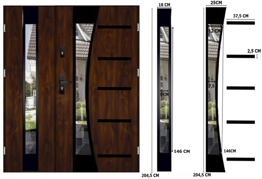 • drzwi z blachy pokrytej folia dekoracyjną PCV pasującą do stolarki okiennej ,