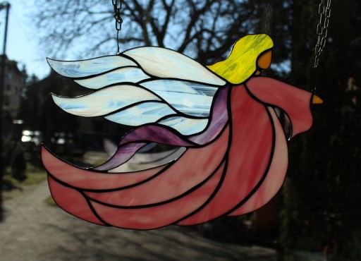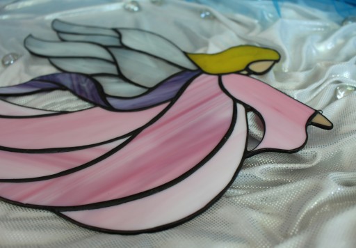 Szkło wycinane jest ręcznie i połączone ze sobą miedzią oraz cyną. Skrzydła wykonane są z półprzezryczystego białego-bezbarwnego szkła, sukienka zaś z barwionego w masie szkła, które nie jest malowane. Specyficzne ukształtowanie i wybarwienie szkła powoduje, że nie istnieją dwa identyczne egzemplarze.
