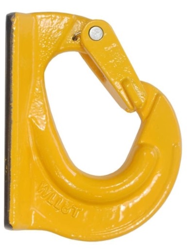 WYKONANIE: Hak do wspawania z płaszczyzną bez lakieru. Hak malowany proszkowo, wykonany ze stali kutej matrycowo hartowanej w klasie wytrzymałości 8. Hak posiada zapadkę zabezpieczającą przed wypięciem liny.