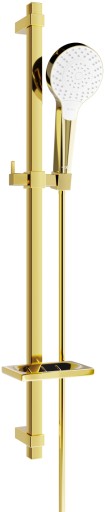 Mexen DQ05 zestaw prysznicowy z drążkiem, słuchawką, wężem oraz mydelniczką, złoty