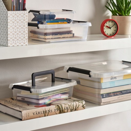 Bardzo uniwersalne, przezroczyste pojemniki o modułowej budowie, umożliwiającej optymalne wykorzystanie przestrzeni. Pojemniki są przezroczyste, dzięki czemu z łatwością można sprawdzić, co się w nich znajduje. Wygodne, czarne klipsy na pojemnikach pozwalają na bezpieczne, a przy tym wygodne przechowywanie – specjalna konstrukcja umożliwia uchylenie pojemników do przechowywania z dowolnej strony.