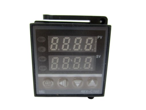 Regulator temperatury REX-C100 to urządzenie, którego celem jest utrzymanie temperatury na zadanym poziomio (SV) poprzed pomiar (PV) i odpowiednie wysterowanie wyjścia (cykliczne).